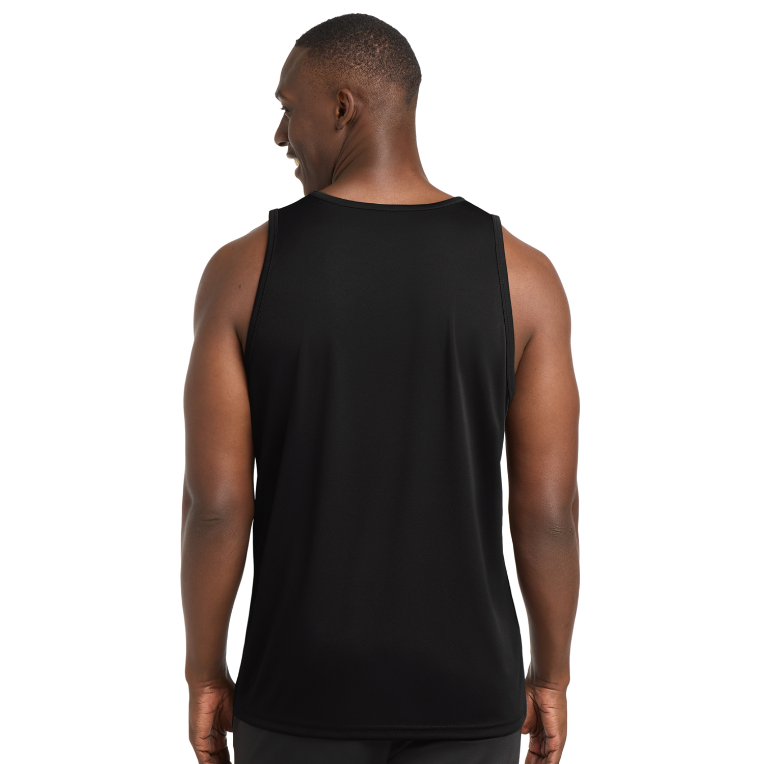 This tank top is lightweight and breathable, made from 100% polyester with moisture-wicking properties. Suitable for athletic wear and casual use.