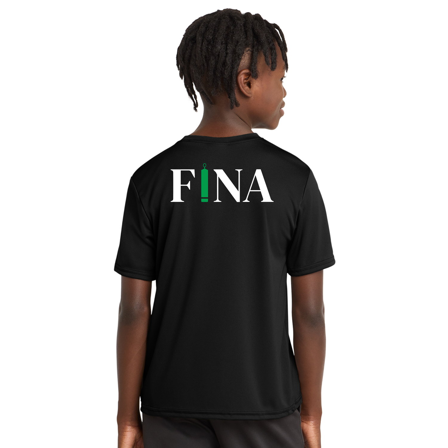 FINA Unisex Youth Performance Tee - Seal Front / FINA Green Back